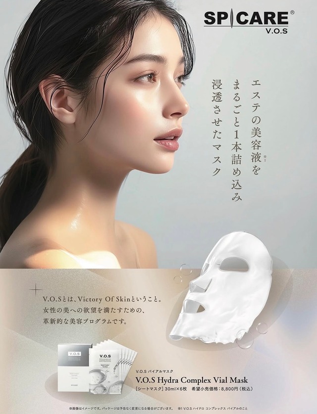 エステの美容液を“まるごと1本”詰め込んだ贅沢シートマスク サロンケアでも人気のバイアル美容液を、1本分たっぷり浸透させたスペシャルマスクがついに登場しました。 お顔全体を30分じっくり包み込むことで、うるおいとハリ感をしっかりチャージ。 「とにかく濃いパックが欲しい!」という方にぴったりの“神パック”です。 ⸻ 商品特徴 • 高濃度アミノ酸コンプレックス&ペプチド配合 お肌をうるおしながら、なめらかなキメへ導きます。 • バイアル美容液を贅沢に1枚へたっぷりと とろみのある美容液がマスクにたっぷり含まれ、30分置いても乾きにくい濃密設計。 • 竹由来の極細繊維「バンブーマイクロシート」採用 厚さ0.1mm以下のやわらかなシートが、お顔の凹凸にぴったりフィット。 デリケートなお肌の方にも使いやすい設計です。 • サロン級ケアをご自宅で エステメニューの仕上げにも使えるクオリティのマスクをご自宅で手軽に。 特別な日の前夜や、ご褒美ケアにもおすすめです。 ⸻ こんな方におすすめ • とにかくしっかり保湿したい • ハリ不足・くすみ感が気になる • シートマスクで物足りなさを感じている • サロン級のスペシャルケアをおうちでしたい • 大切な予定の前に、肌コンディションを整えたい ⸻ ご使用方法 1. 洗顔後、化粧水などでお肌を整えます。 2. マスクを丁寧に広げ、お顔に密着させます。 3. 20〜30分ほど置きます。 4. マスクを外したら、お肌に残った美容液を手のひらでやさしくなじませてください。 首やデコルテにも伸ばしていただくのもおすすめです。 ※週1〜2回のご使用がおすすめです。 お肌の状態に合わせて頻度を調整してください。 ⸻ 商品情報 • 商品名:V.O.S Hydra Complex Vial Mask(V.O.S バイアルマスク) • 内容量:1枚あたり 30ml × 6枚入り • 価格:8,800円(税込) ⸻ ご注意事項 • お肌に合わないときはご使用をおやめください。 • 傷・はれもの・湿疹など、異常のある部位には使用しないでください。 • 使用中や使用後、赤み・かゆみ・刺激などの異常があらわれた場合は、速やかに使用を中止し、専門医にご相談ください。 • 目に入らないようご注意ください。入った場合はすぐに洗い流してください。 • 高温多湿・直射日光を避けて保管してください。 ⸻ 発送について ・ご入金確認後○日以内に発送いたします。 ・送料・発送方法はカート内にてご確認ください。 ⸻ ※サロンのエステメニューにも、こちらのマスクを組み込んだスペシャルコースを準備中です。 ご来店のお客様は、サロンでの体験もぜひお楽しみに…✨